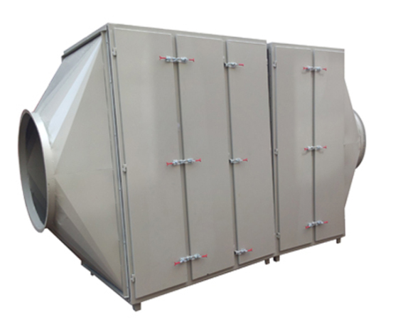 ①活性炭吸附單元在設備箱體內(nèi)分層抽屜式安裝,能夠非常方便從兩側的檢查門取出。